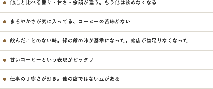その中でも、他店のコーヒーをと飲み比べた上で緑の館のお客様になった方も多いのです。